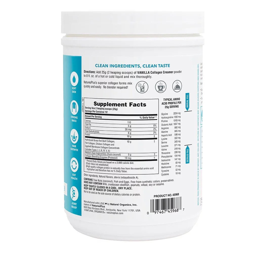 Elevate your daily routine with Vanilla Collagen Creamer! This 0.66 lb powder offers a delicious vanilla flavor while providing essential collagen nutrients for your hair, skin, nails, joints, and immune system. Featuring six types of hydrolyzed collagen for optimal absorption, our clean and sustainable formula includes only the finest sources like grass-fed beef, wild-caught cod, and cage-free chicken eggshell membrane. Enjoy the creamy texture and health benefits in your favorite hot or cold beverages and foods. Make your wellness a priority with this exceptional collagen creamer!